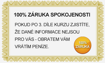 ...bezprostředně po 3. části kurzu zjistíte, že dané informace nejsou pro Vás a nepřinášejí Vám žádnou hodnotu, obratem Vám vrátím peníze. Tuto garanci je třeba využít před zveřejněním 4. části kurzu a to písemnou formou na adresu společnosti nebo emailem.